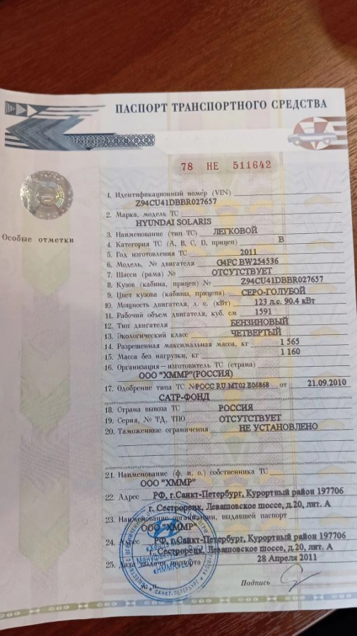 VIN номер: